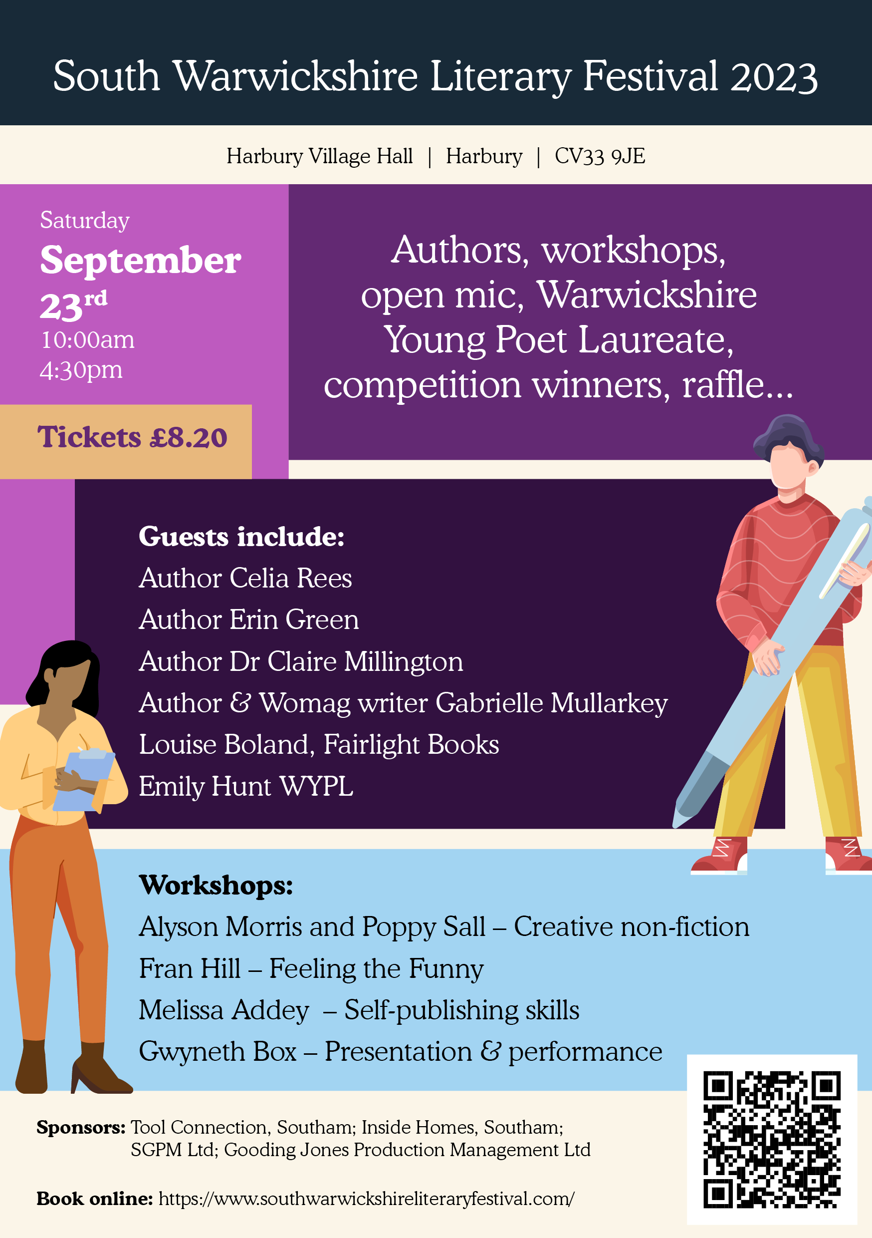But here we are heading toward Saturday 23rd – here’s the postcode if you fancy coming along – CV33 9JE – all our workshops are now full but we have an amazing running order. Just look at this lot! Author Erin Green – she of the 12 romance and romcom novels – will be giving a talk on life as an agented and published author, sharing her insight and experience and telling it like it is to be a writer in the current climate. We delighted to have Louise Bolan, founder of the superb Fairlight Books giving the headline talk on everything you’ll ever need to know about how to get your work in front of a small publisher. Local author Celia Rees, author of award-winning Witch Child is joining us, historian Dr Claire Millington is opening the show with a talk about her children’s book set in Pompeii at a time when things got a bit hot and dusty, and no SWLF would be complete without our current Young Poet Laureate. Honestly, kids these days! Poetic, Talented, The Future!